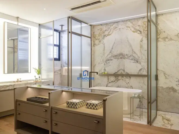5 Banheiros: Além das suítes, a penthouse conta com banheiros adicionais, pensados para atender às necessidades de moradores e visitantes.